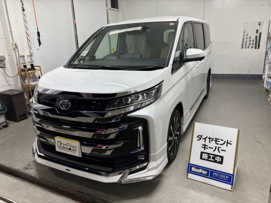 | 担当者コメント | この度は、当店でダイヤⅡキーパーを施工していただき、誠にありがとうございます。ダイヤモンドキーパーの2倍の艶。ホコリが塗装表面には密着せず、強めの雨が降れば表面の撥水力で弾かれた水と一緒に流れ落ちてしまうので、まるで洗車をしたようにキレイになります。 |