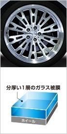 「ホイールコーティング2」の被膜にもう1層乗せることで、より艶と水ハジキを保ちます。※おもて4本