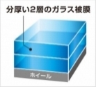 | 特徴 | レジン被膜に、高密度ガラス皮膜を二層重ねた、三重構造。 ダイヤモンドキーパー同様に空気乾燥させつつ、厚いガラスの層が2倍あることで、ツヤや汚れにくさが更にアップ。 もちろん水シミ、紫外線もしっかりガード。 |